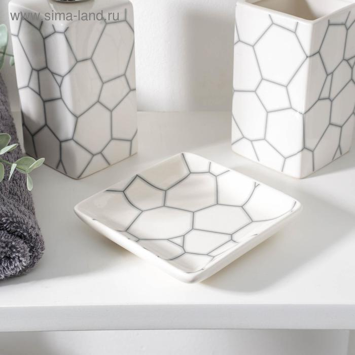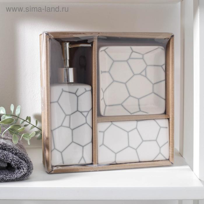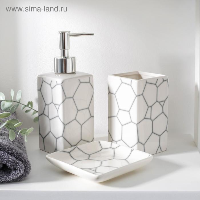 Набор аксессуаров для ванной комнаты «Мрамор», 4 предмета (дозатор 190 мл, мыльница, 2 стакана 290 мл), цвет белый