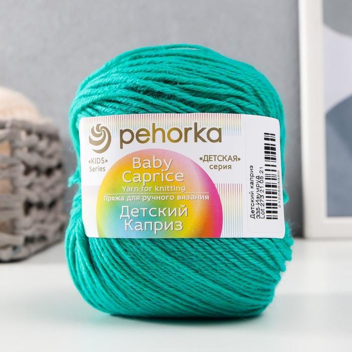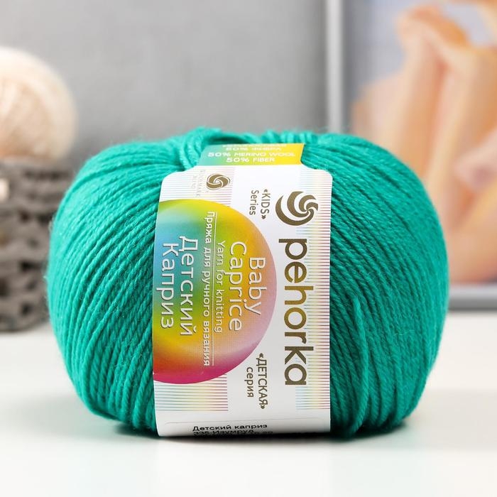Пряжа для вязания спицами, крючком «Пехорский текстиль. Детский каприз», 50% мериносовая шерсть, 50% фибра, 225 м/50 г, (335 изумруд)