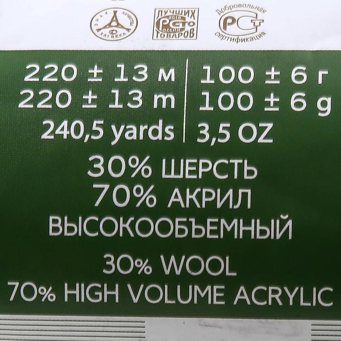 Пряжа для вязания спицами, крючком «Пехорский текстиль. Народная», 30% шерсть, 70% акрил объёмный, 220 м/100 г, (393 св. маренго)