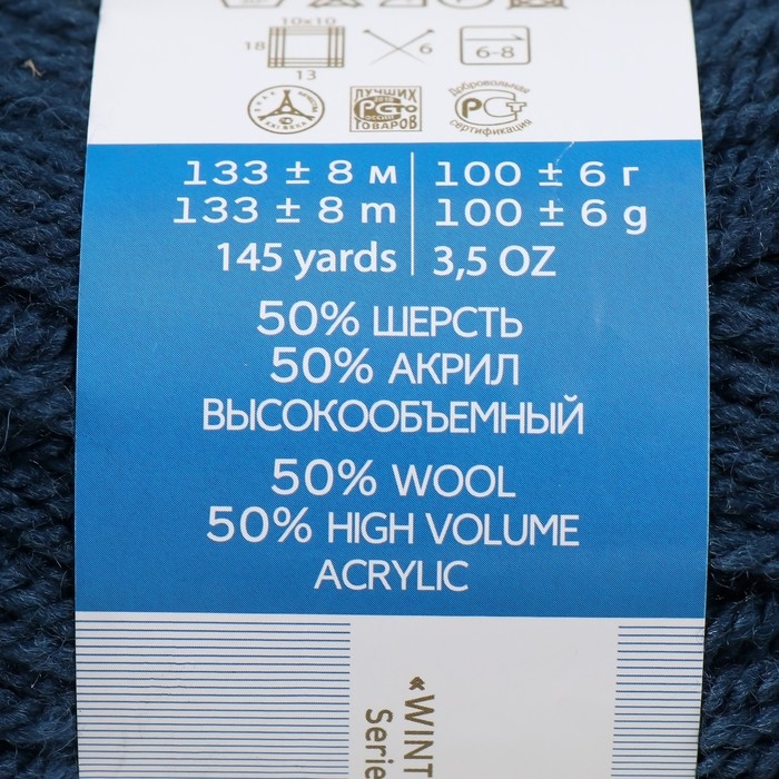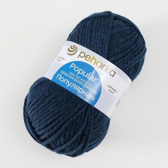 Пряжа для вязания спицами, крючком «Пехорский текстиль. Популярная», 50% шерсть, 50% акрил, 133 м/100 г, (156 индиго)