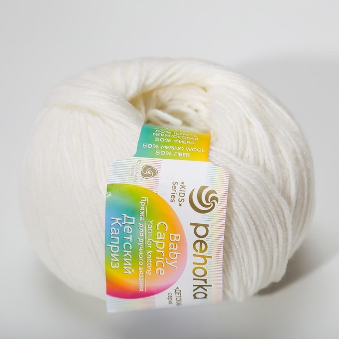 Пряжа для вязания спицами, крючком «Пехорский текстиль. Детский каприз», 50% мериносовая шерсть, 50% фибра, 225 м/50 г, (01 белый)