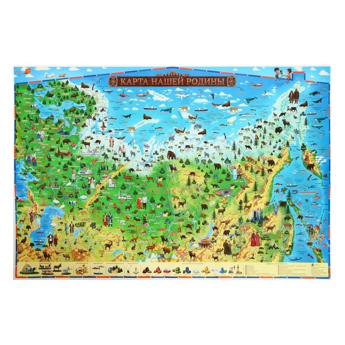 Карта России для детей "Карта Нашей Родины", 101 х 69 см, ламинированная