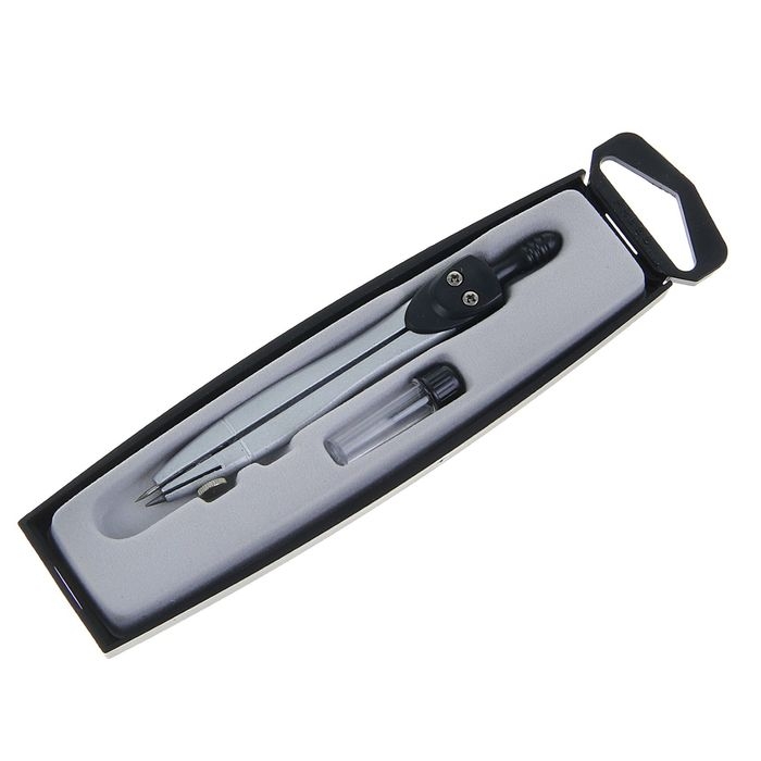Циркуль металлический в пластиковом пенале с запасными грифелями