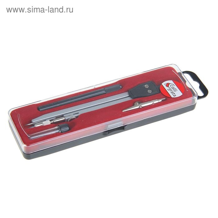 Готовальня Calligrata 4 предмета: циркуль, грифель, удлинитель, рейсфедер, в пластиковом пенале