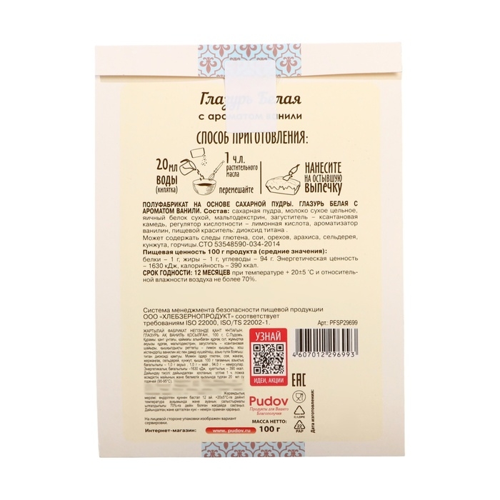 Сахарная глазурь «С. Пудовъ», белая, 100 г