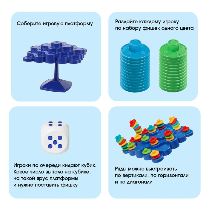 Перед вами уникальное игровое поле — оно никак не стоит на месте и всё время качается из стороны в сторону. Вам предстоит не только удержать равновесие платформы, но и выстроить на ней ряды из пяти фишек!