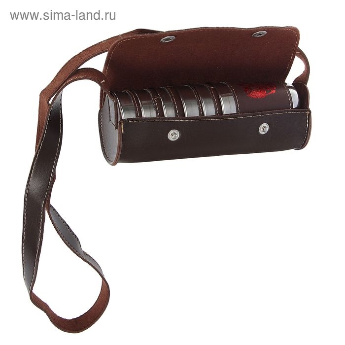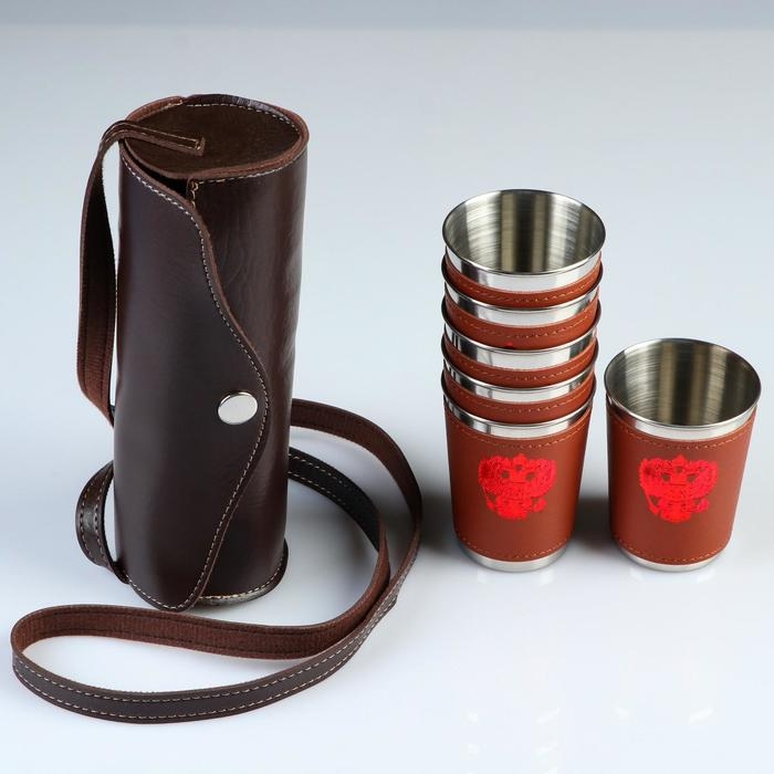 Стопки «Герб», 100 мл, нержавеющая сталь, в чехле, коричневые, набор 6 шт