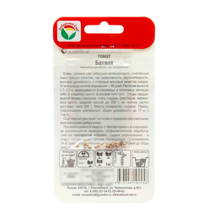 Семена Томат "Батяня", раннеспелый,индетерминантный,высокорослый, 20 шт