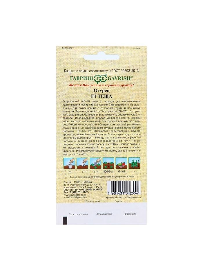 Семена Огурец "Теща" F1, корнишон, скороспелый, партенокарпический, 10 шт.
