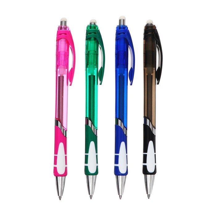 Ручка шариковая со стираемыми чернилами, линия 0,8 мм, автоматическая, стержень синий, корпус тонированный с резиновым держателем