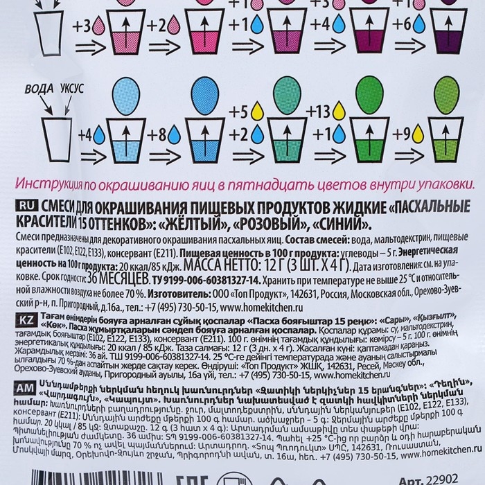 Красители пищевые для яиц "Пасх. набор Цветик-семицветик" 16шт.