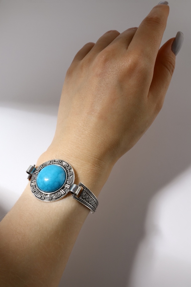 Браслет ассорти «Бирюзовый мир» круг, цвет голубой в серебре, L=19 см