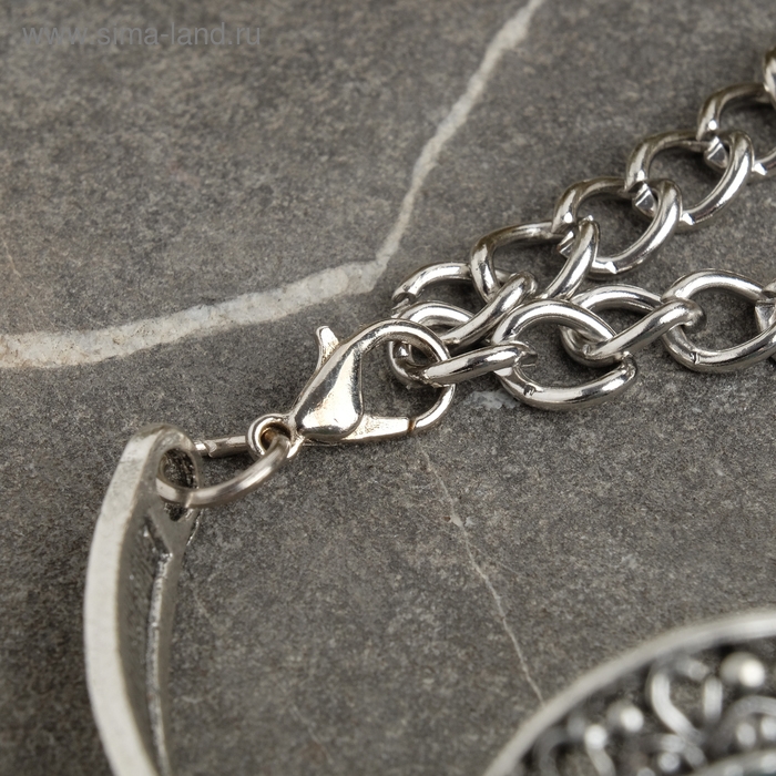 Браслет кожа «На магните» бусинки, цвет бело-серебристый, 38см