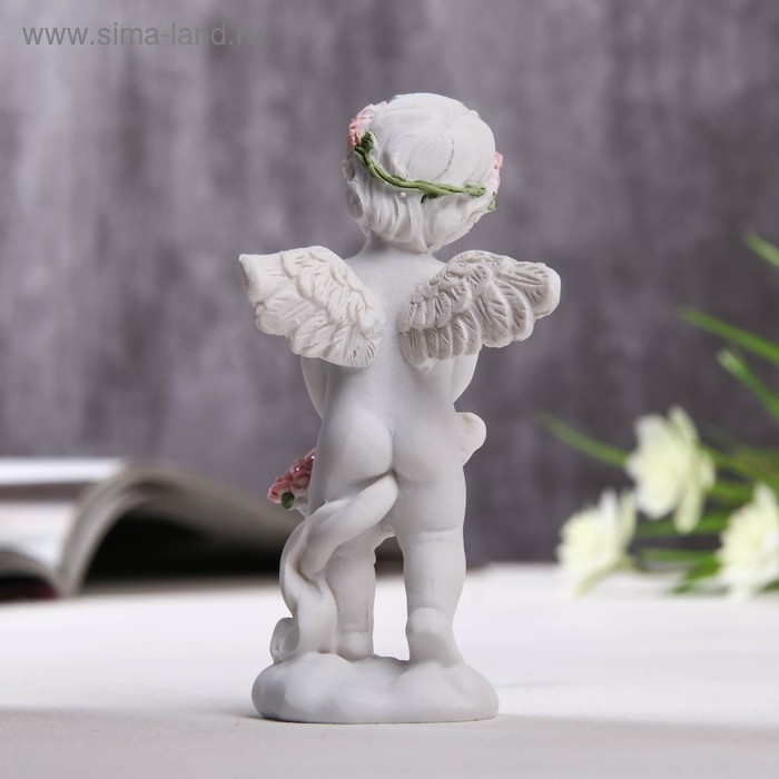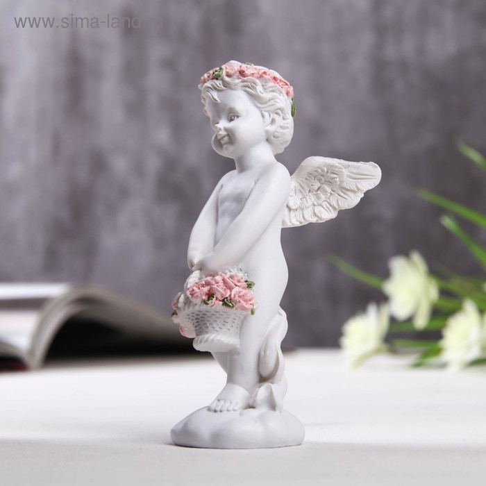 Фигурка полистоун "Ангел с корзинкой розовых роз" 10х3,5х5 см