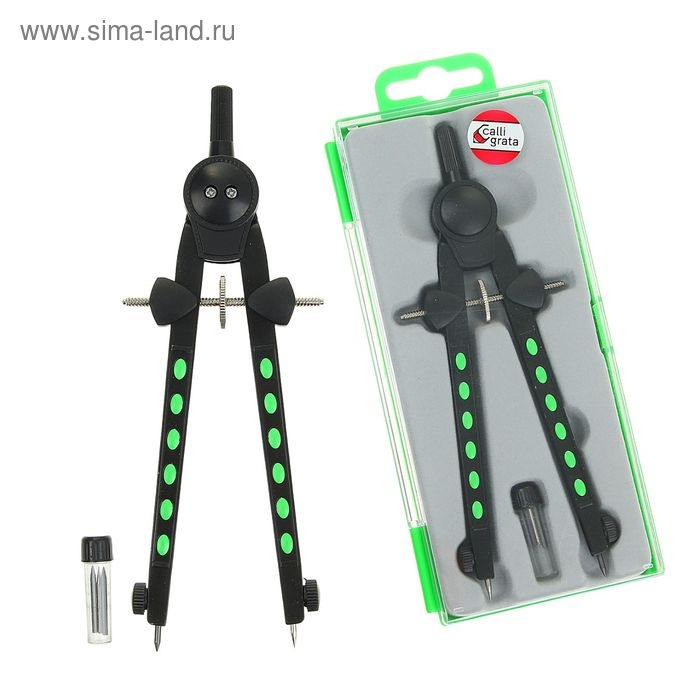 Циркуль металлический 120 мм Calligrata, в пластиковом пенале, с запасным грифелем