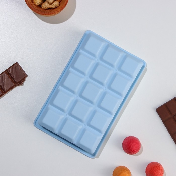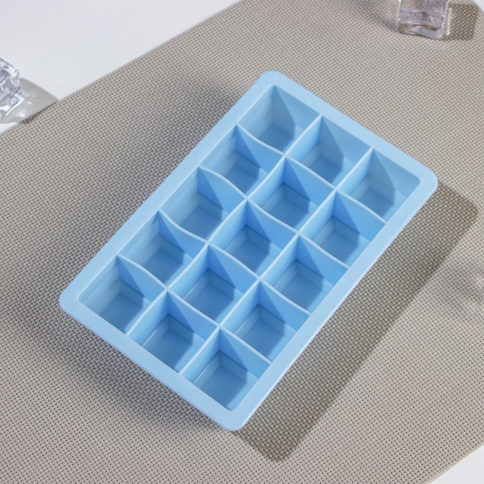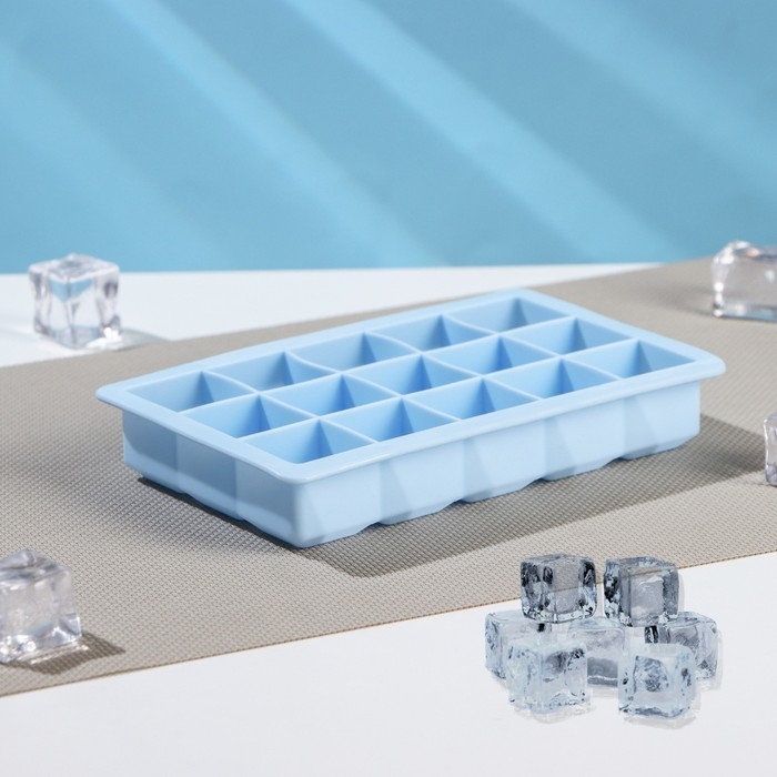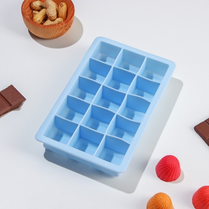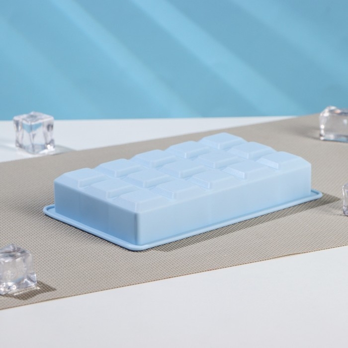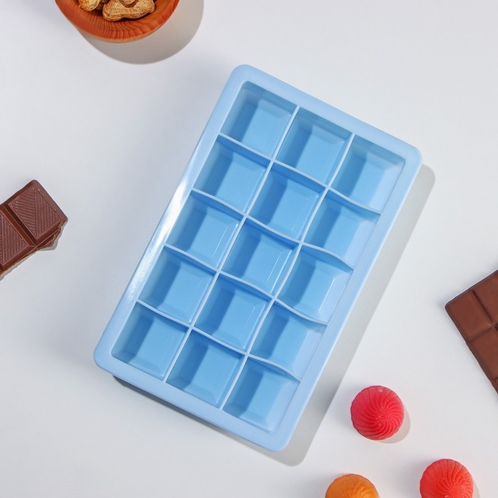 Форма для льда Доляна «Кубик», силикон, 11,7×18,7×3,4 см, 15 ячеек (3,4×3,4 см), цвет голубой