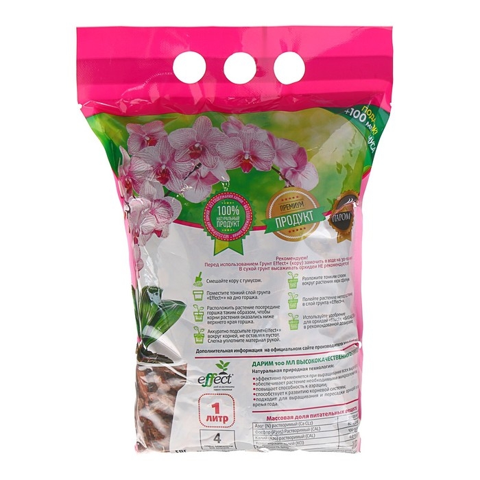 Грунт для орхидей Effect+, с дренажным камнем, фракция 20-40, 4 л
