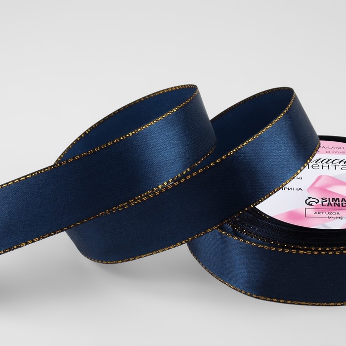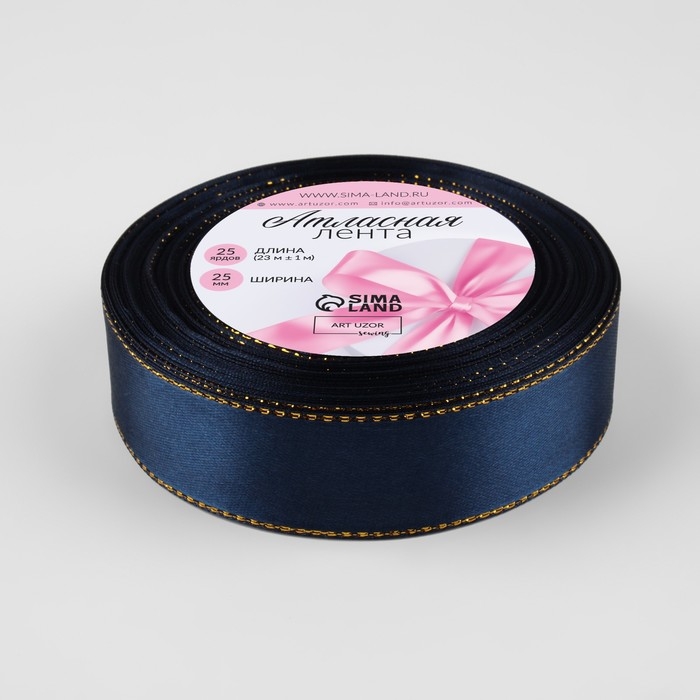 Лента атласная «Золотые нити», 25 мм × 23 ± 1 м, цвет синий №038
