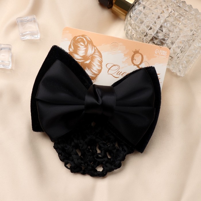 Заколка-автомат для волос "Бантик" с сеточкой для пучка, d-10 см, чёрный