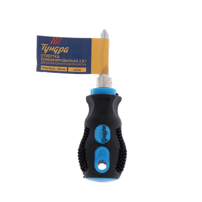 Отвертка комбинированная ТУНДРА, 2 в 1, сатин, двухкомпонентная рукоятка, PH2/SL6 х 38 мм