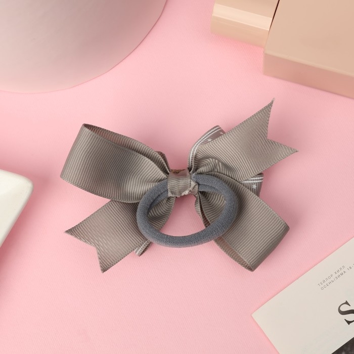 Резинка для волос "Школьница" бант звезда, 12 см, серый