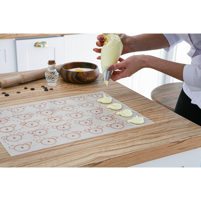Коврик для выпечки армированный «Макарун. Ушки», силикон, 42×29,5 см