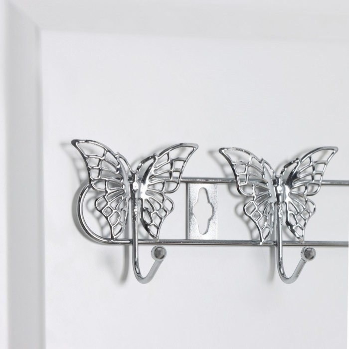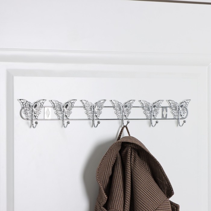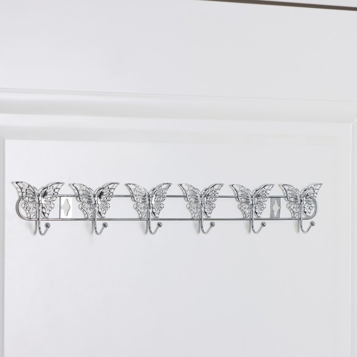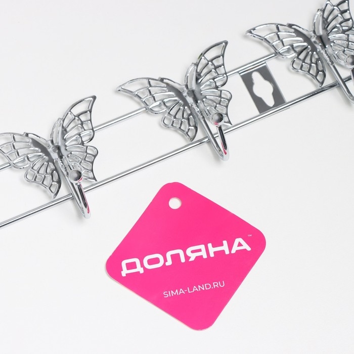 Вешалка настенная Доляна «Бабочки», 6 крючков, 34,5×3×6,5 см, цвет серебряный