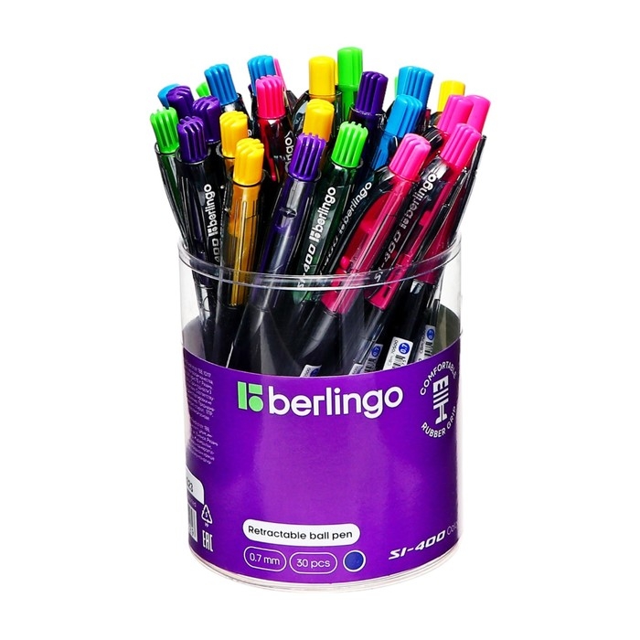 Шариковая автоматическая ручка Berlingo SI-400 Color в стильном дизайне. Дымчатый круглый корпус ручки с цветным резиновым грипом и пластиковый клип создают дополнительный комфорт при письме. Диаметр пишущего узла составляет 0,7 мм, толщина линии письма – 0,5 мм, а длина письма – 450 м.Уникальная запатентованная технология Smart Ink обеспечивает лёгкое и приятное письмо, за счёт использования чернил пониженной вязкости и инновационных материалов шарика, пишущего узла и его специальной конструкции. Инновационные компоненты, используемые для изготовления шарика пишущего узла (карбид вольфрама), обеспечивают долговечность и стабильность качества письма. Технология: Smart Ink,Цвет чернил: синяя,Толщина линии письма: 0,5 мм,Длина письма: 450 м,Цвет корпуса: микс из 5-ти дизайнов.