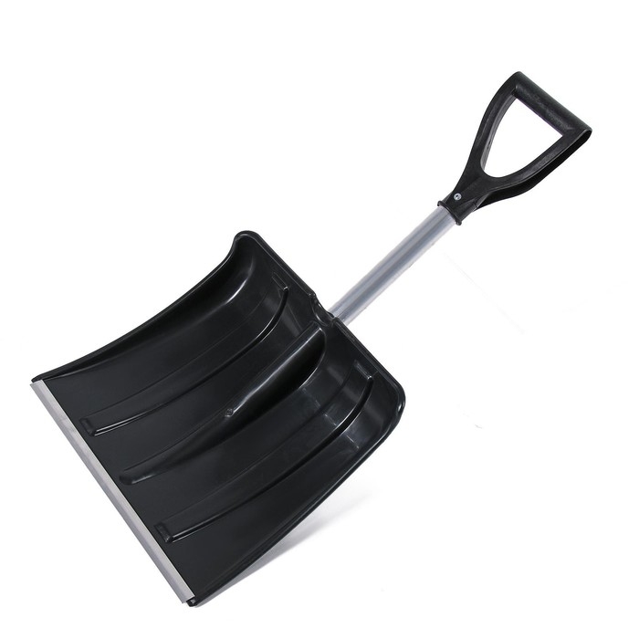 Лопата для уборки снега, автомобильная, пластиковый ковш 380 × 370 мм, алюминиевая планка, алюминиевый черенок, с ручкой