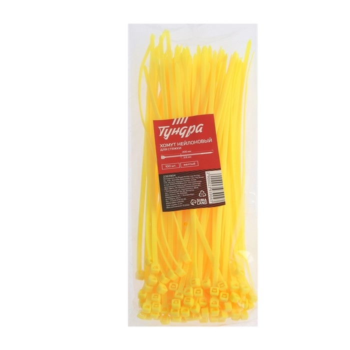Хомут нейлоновый для стяжки, ТУНДРА, 3,6х200 мм, желтый, 100 шт
