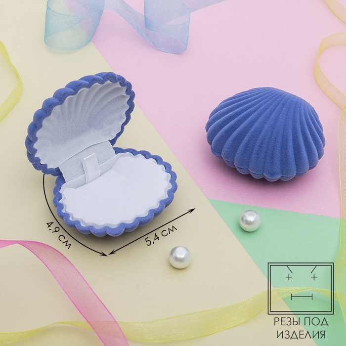 Футляр бархатный под серьги/кулон «Ракушка» 6×5,5, цвет небесный, вставка белая