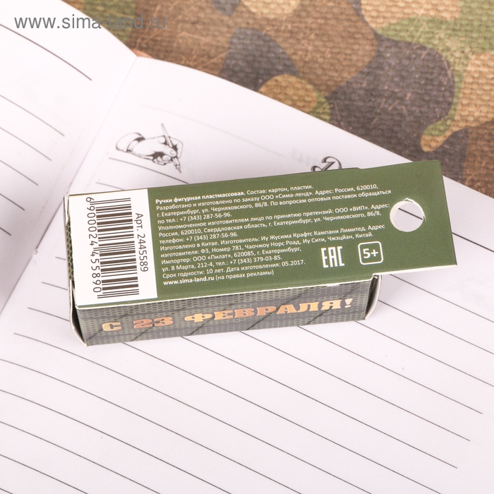 Ручка прикол, шариковая синяя паста фигурная «С 23 февраля»