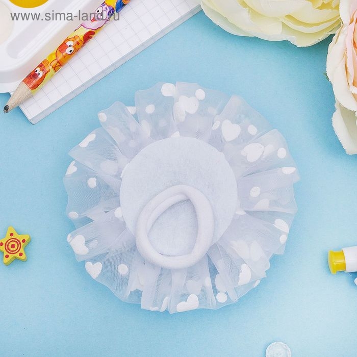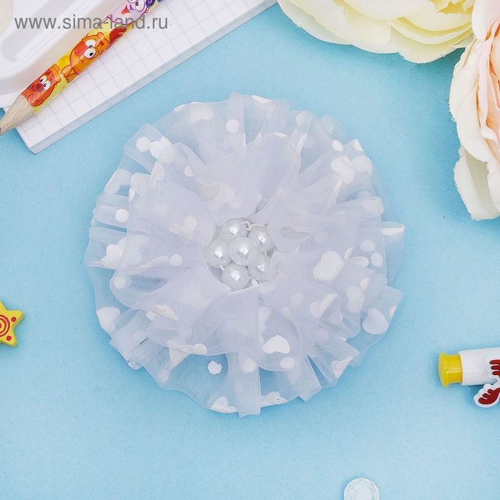 Резинка для волос бант "Школьница" снежный жемчужный цветок, d-8,5 см, белый
