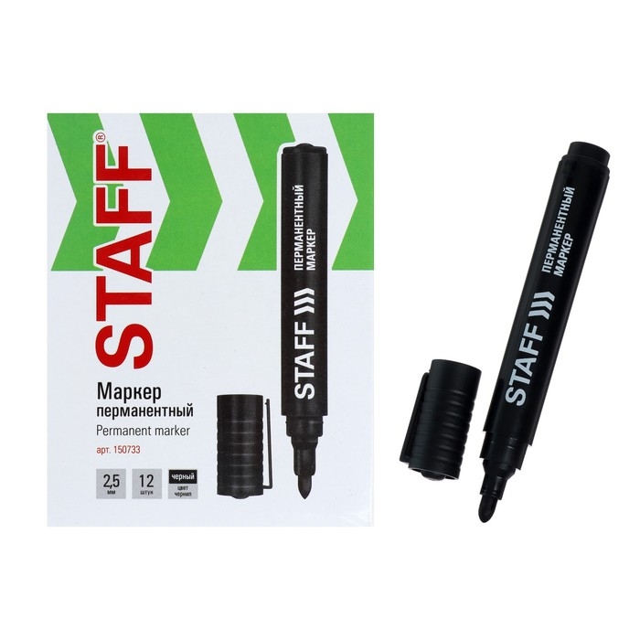 Маркер перманентный 2.5 мм STAFF, нестираемый, чёрный