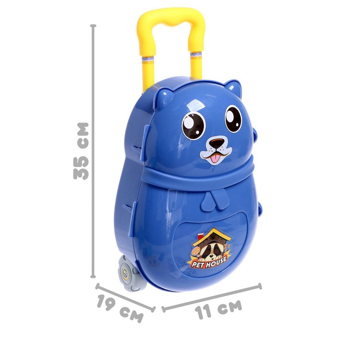 Размеры: питомец — 5 × 4 × 5,5 см; чемоданчик — 35 × 19 × 11 см.