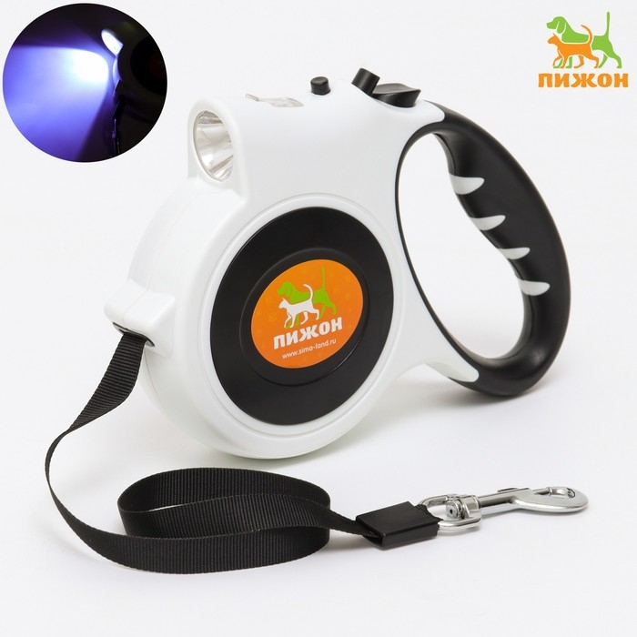 Рулетка "Пижон" с фонариком - это уникальный инструмент, который позволяет вам выгуливать питомца в ночное время. Рулетка имеет длину 5 метров, что позволяет вашему питомцу свободно двигаться и наслаждаться прогулкой. Она подходит для собак весом до 35 кг.