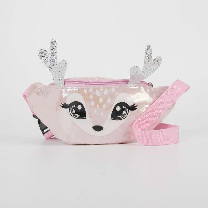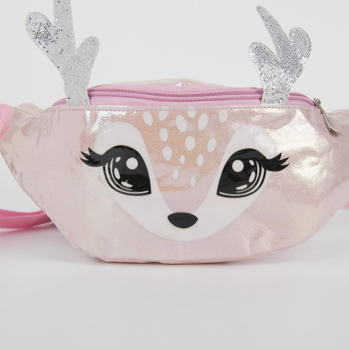 Сумка детская для девочки поясная "Оленёнок", на молнии, цвет розовый
