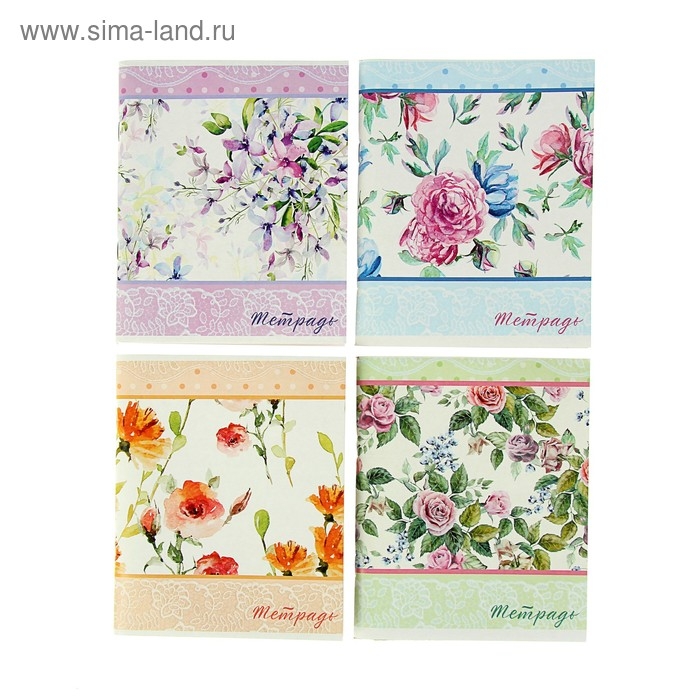 Тетрадь 96 листов в клетку "Цветы-2", обложка мелованный картон, блок №2 белизна 75% (серые листы), МИКС