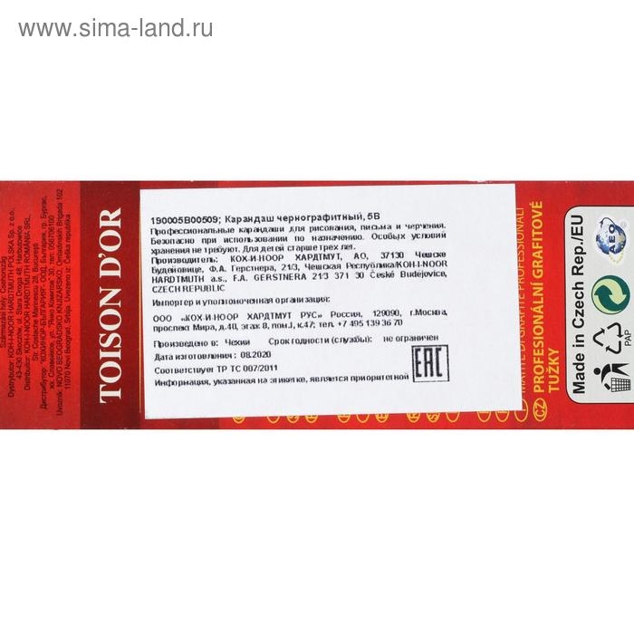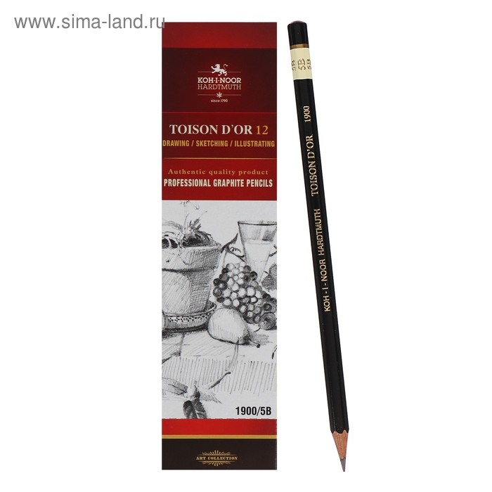 Карандаш профессиональный чернографитный 2.5 мм, Koh-I-Noor 1900 5В, L=175 мм
