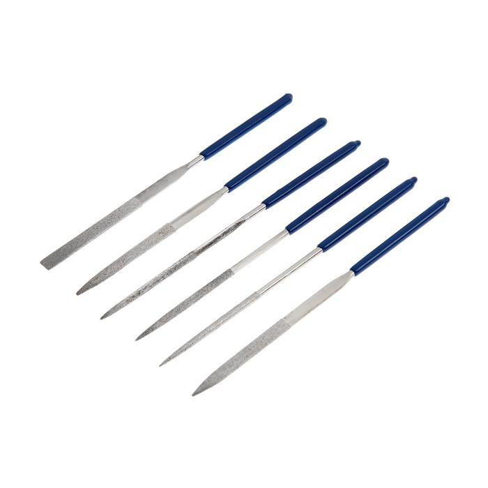 Набор надфилей алмазных ТУНДРА, обрезиненные рукоятки, 50 х 140 х 3 мм, 6 шт.