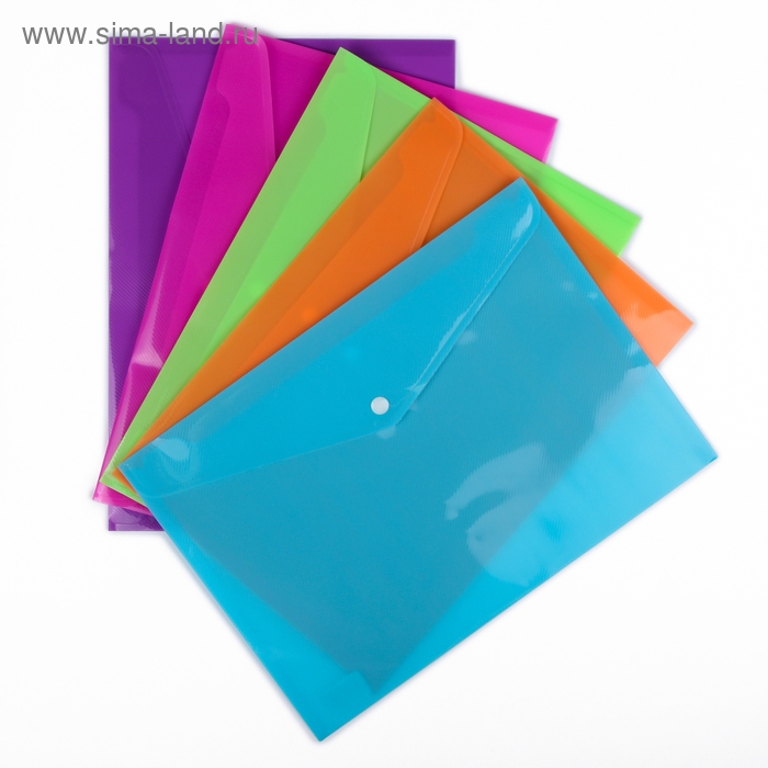 Папка-конверт на кнопке, А4, 180 мкм, МИКС, рифлёная