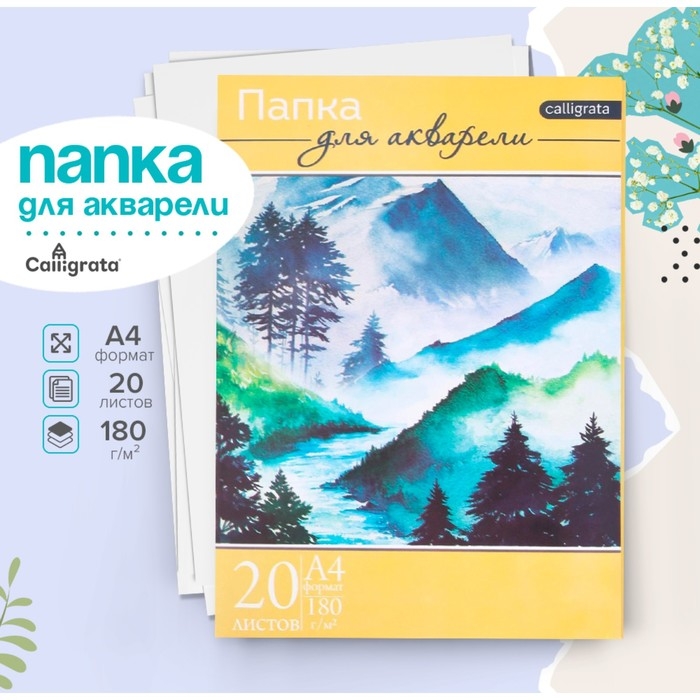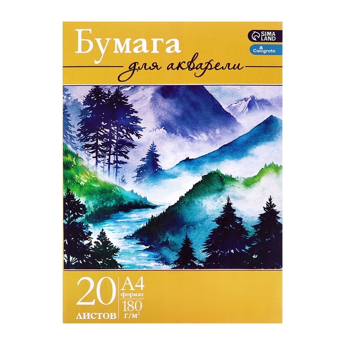 Папка для акварели А4, 20 листов "Пейзаж", блок 180 г/м 2