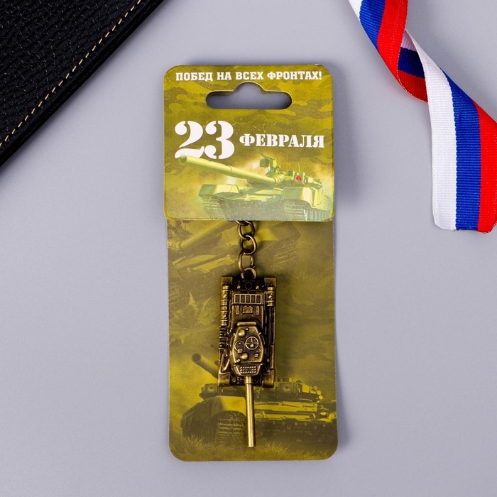 Брелок для ключей металлический «Побед на всех фронтах. 23 февраля», танк, 2 х 10 см