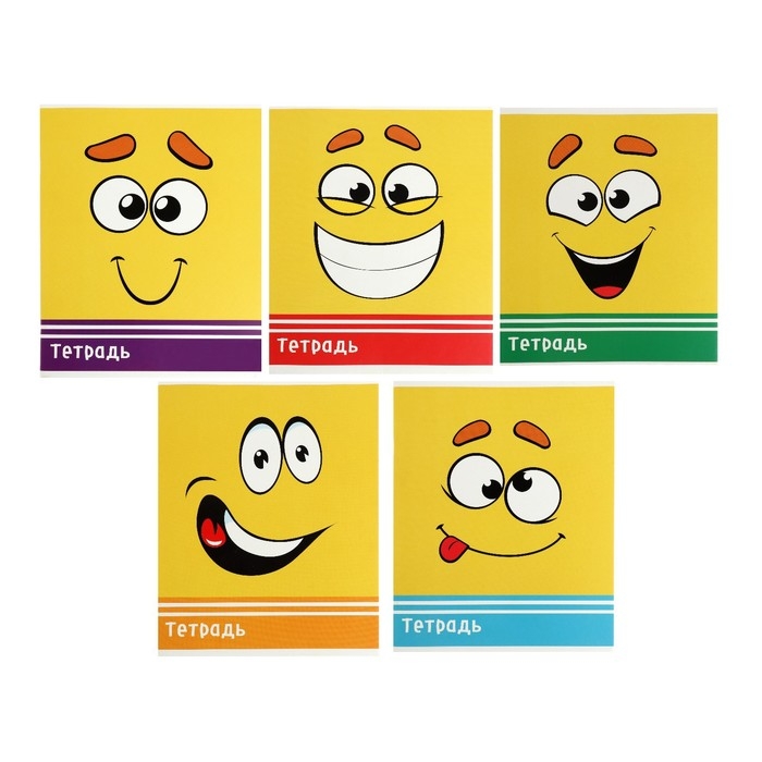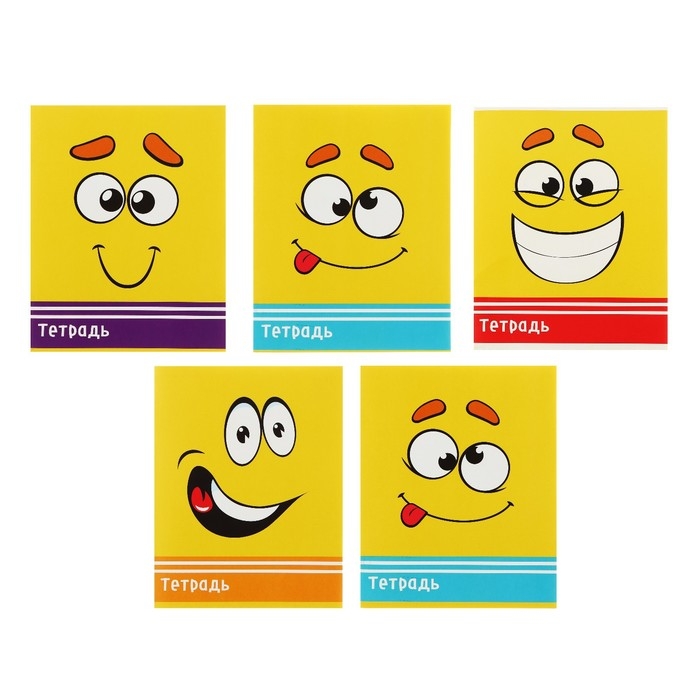 Комплект тетрадей из 10 штук (5 видов по 2 штуки), 48 листов в клетку Calligrata "Смайлики", обложка мелованный картон, блок офсет