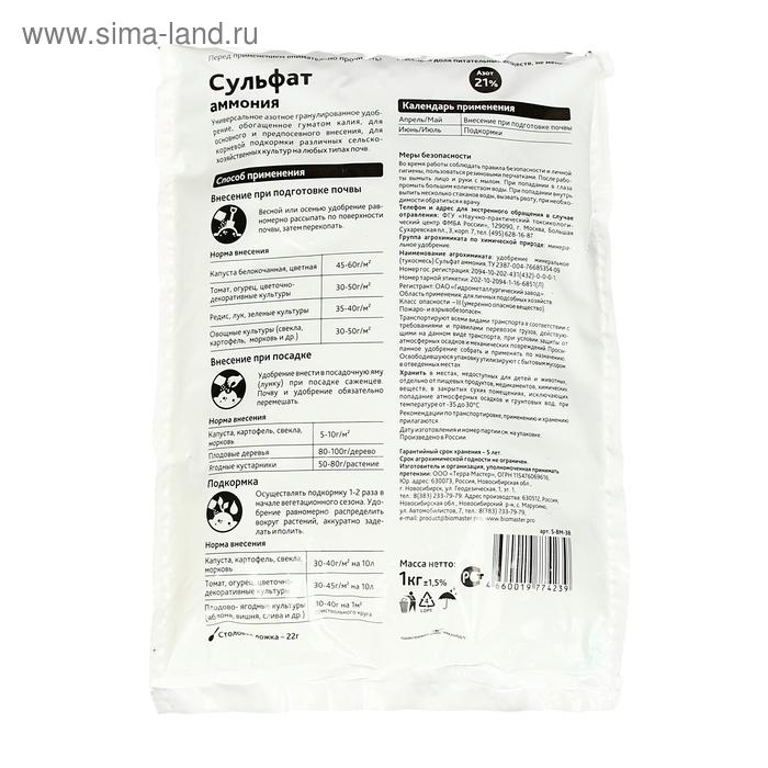 Удобрение минеральное БиоМастер Сульфат аммония, гум., 1 кг