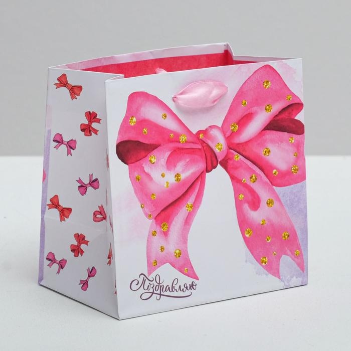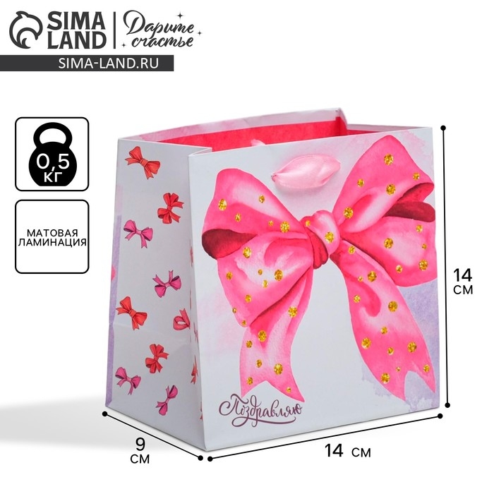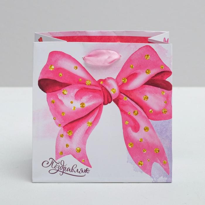 Пакет подарочный ламинированный квадратный, упаковка, «Поздравляю!», 14 х 14 х 9 см