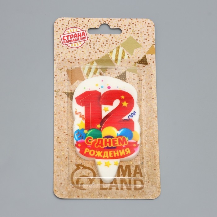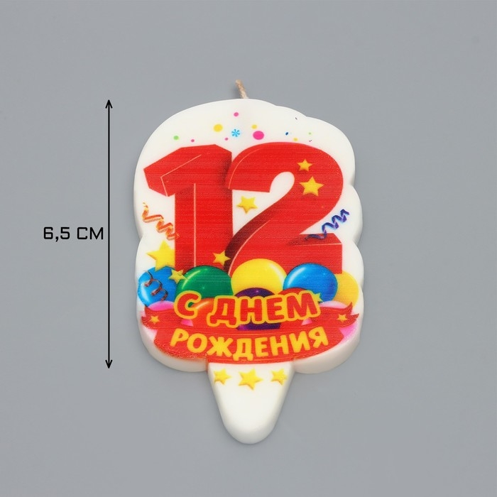 Свеча для торта цифра "С Днём Рождения" "12" красная, 6,5 см