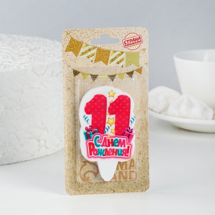 Свеча для торта цифра «С Днём Рождения» "11" красная, 6,5 см