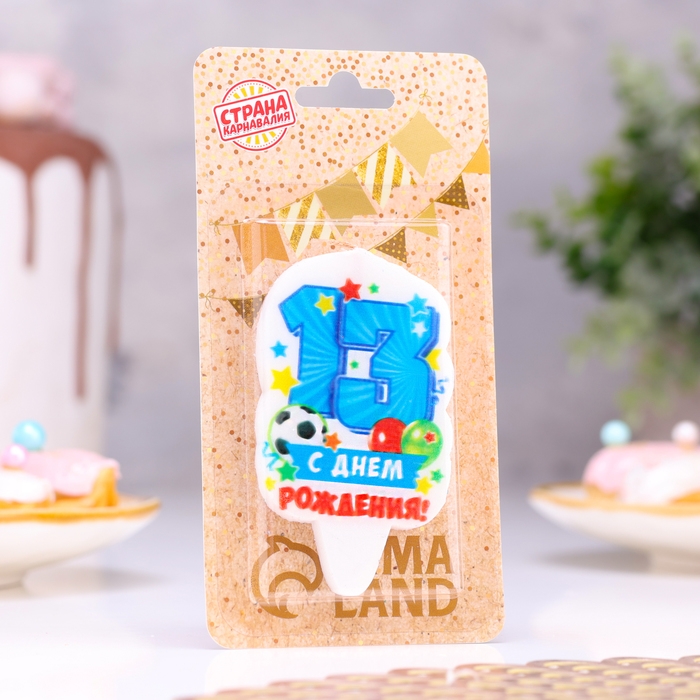 Свеча для торта цифра "С Днём Рождения" "13" голубая, 6,5 см