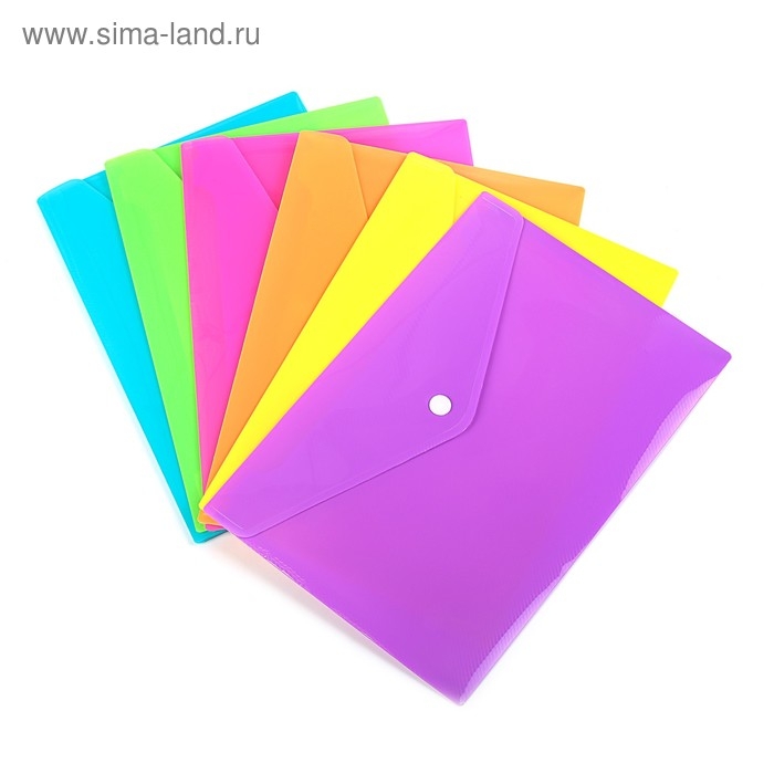 Набор папок-конвертов на кнопке 10 штук, А4, 180 мкм, Calligrata Office, полупрозрачные, микс